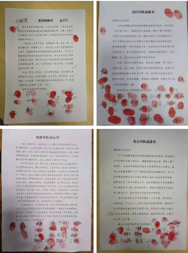 ▲黨員、團(tuán)員、骨干遞交請(qǐng)戰(zhàn)書、決心書。